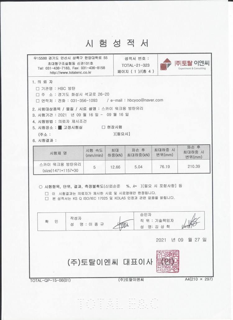 타사보다 월등한 방탄유리 테스트 동영상입니다.